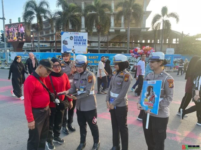 TIDAR NEWS COM – Paur Sie BPKB Ditlantas Polda Riau, AKP Fauza Hanes Tiara memimpin langsung kegiatan Polantas Menyapa di kawasan Car Free Day (CFD) Jalan Jenderal Sudirman, Pekanbaru, pada Minggu pagi. (14/09/25)