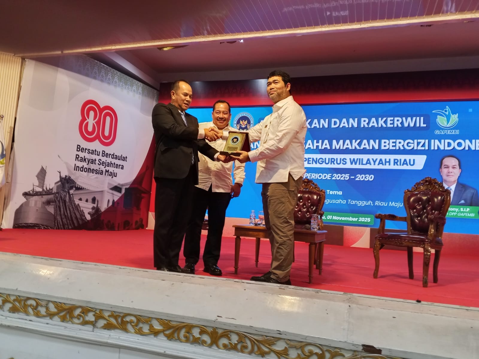 TIDAR NEWS.COM – Pengurus Gabungan Pengusaha Makan Bergizi (Gapembi) Wilayah Riau periode 2025–2030 resmi dilantik oleh Ketua Umum Gapembi Indonesia, H. Alven Stony, S.I.P, di Balai Serindit, Kompleks Gubernuran Riau, Jalan Diponegoro, Pekanbaru, Sabtu (1/11/2025).