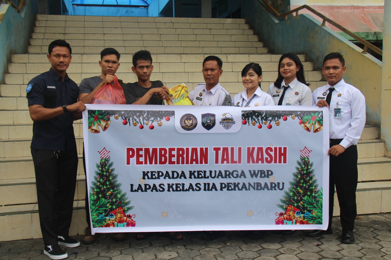 TIDAR NEWS.COM – Bakti Sosial Lembaga Pemasyarakatan (Lapas) Kelas IIA Pekanbaru, kepada keluarga warga binaan yang kurang mampu, menyambut Perayaan Natal dan Tahun Baru (Nataru) sebagai wujud kepedulian serta komitmen Lapas dalam menghadirkan semangat kebersamaan dan berbagi kasih, Rabu (10/12/25).
