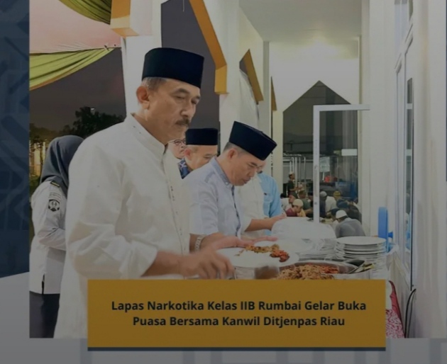TIDAR NEWS. COM – Lapas Narkotika Kelas IIB Rumbai menggelar kegiatan berbuka puasa bersama yang dihadiri oleh jajaran Kantor Wilayah Direktorat Jenderal Pemasyarakatan (Ditjenpas) Riau, Kamis (12/03/2026). Acara digelar di Masjid At-Taubah Lapas Narkotika Rumbai.
