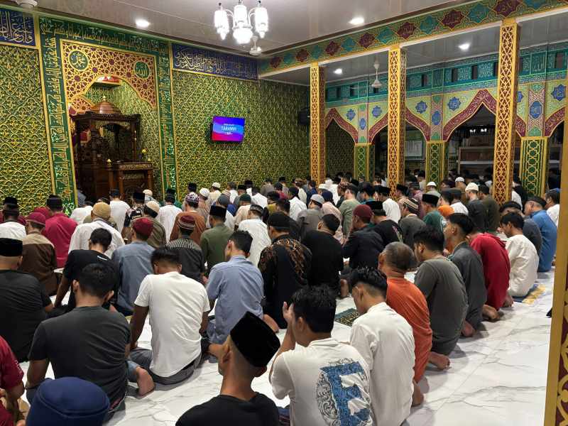 TIDAR NEWS.COM – Malam pertama sholat Tarawih secara berjamaah Bulan Suci Ramadhan 1447 Hijriah, di Masjid At-Taubah Lapas Kelas IIA Pekanbaru, ratusan warga binaan terlihat khusyuk dan mengikutinya Rabu malam (18/02/2026).